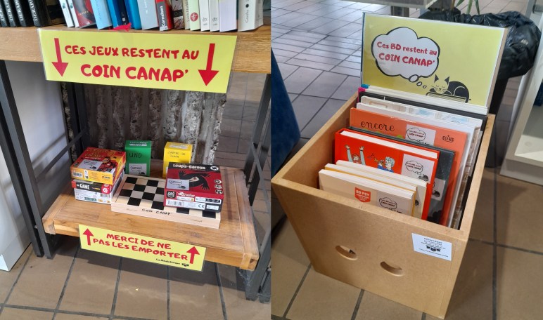 Des jeux et des BD à votre disposition au Coin Canap' !